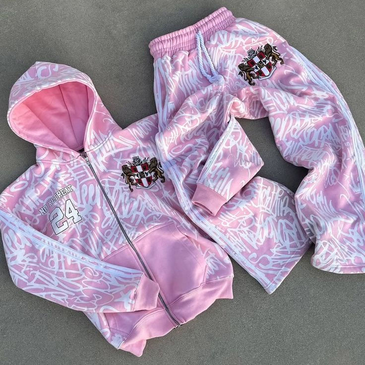 Two-piece tracksuit with puff-print logo and metal zipper details. Perfect for urban wear.